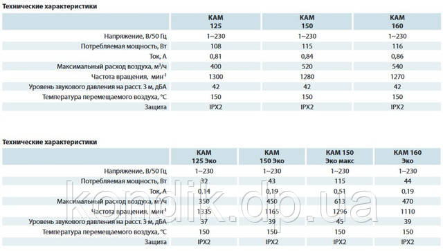 - Вентилятор серії КАМ обладнаний асинхронним двигуном із додатковою крильчаткою для обдування й охолодження.